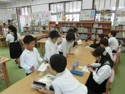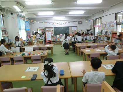 11月2日(木)から9日(木)まで中浜小学校では、読書週間として多くの子どもたちに図書室へ来てもらう催しをしています。図書館に来てくれた児童に4・5・6年の図書委員が手作りしたしおりを配っています。クイズラリーに参加した児童には折り紙のプレゼント付きです。これを機会に、少しでも読書することが増えれば幸いです。