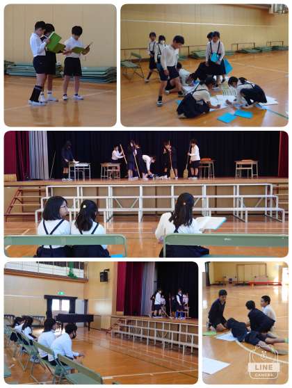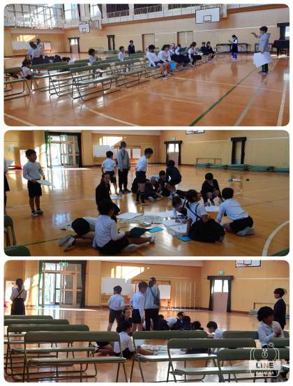 講堂をのぞきに行くと、4年生がグループに分かれて、学習発表会の準備をしていました。一人一人今自分がすることをよく分かっていて、着々と練習や作業をしていました。時間が来たら全員で合わせてみるそうです。みんな意欲的に活動しています。ほんと感心します。