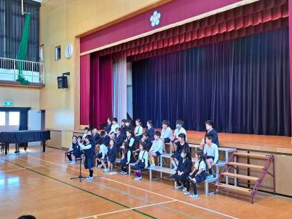 2年生は、自分の動きや役割を覚えるために、真剣に先生の話を聞いていました。少しずつ形になってきています。大きな声が講堂に響いていました。