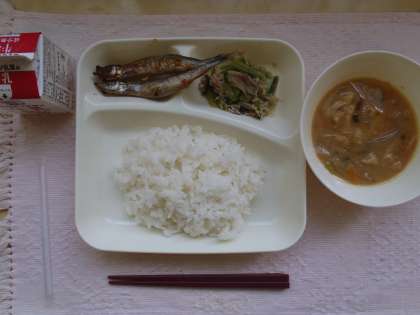 だしのきいた温かいみそ汁でほっとしながら今日もしっかり食べました。