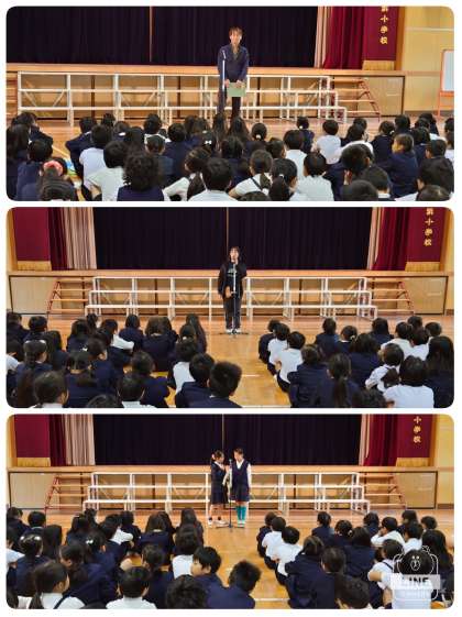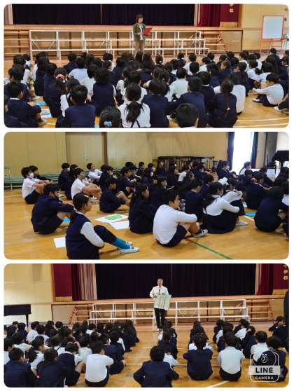 今日の児童朝会では、各学年にインタビューしてきた「学習発表会の見どころ」についてお話しをしました。