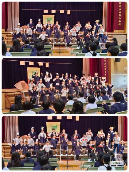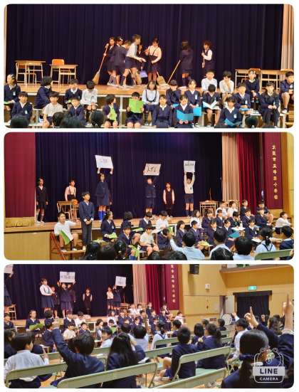 2年は「ニャーゴ」の音読劇、4年は「ごみのゆくえ」と「くらしを支える水」の発表、6年は「平和のためにできること、平和だからできること」の発表です。