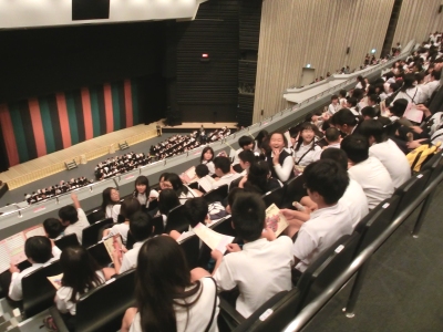 10月21日(水)午後、6年生は、「こころの劇場」にやってきました。こころの劇場とは、日本全国の子どもたちを劇場に無料招待し、演劇の感動を届けるプロジェクトです。「子どもたちの心に、生命の大切さ、人を思いやる心、信じあう喜びなど、人が生きていく上で最も大切なものを、舞台を通じて語りかけたい」という願いのもと行われています。
