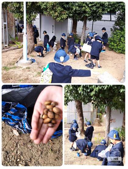 中浜中央公園に到着しました。さっそく活動開始です。春に来た時との違いを探しました。ドングリ・落ち葉・ドングリの帽子をたくさん見つけました。