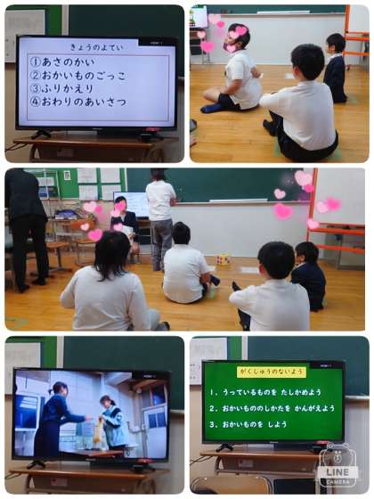 1時間目にさくら学級の公開授業をしました。学習のめあては、「お買い物のルールや約束を守って、自分の好きなものを買おう」です。