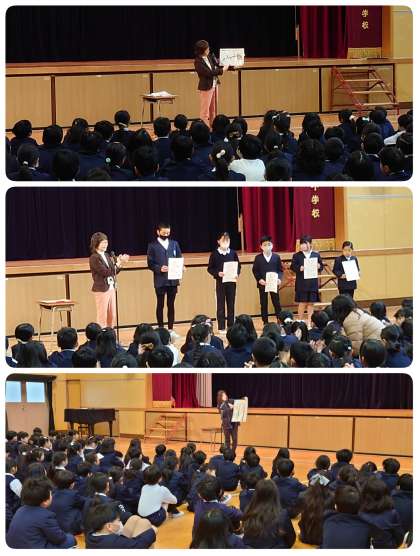 今日の児童朝会では、冬休みの歯みがきカレンダーのお話と読書感想文の表彰をしました。