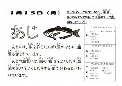 あじは、「味が良いから、あじ」という名前がついたともいわれています。刺身やフライ、今日のようなマリネにしてもおいしいですね。