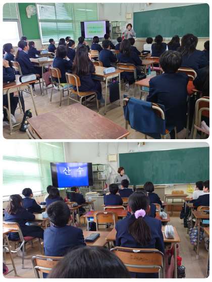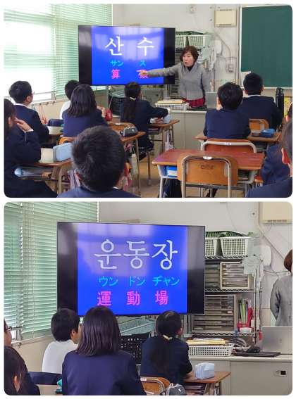 今日は3・4年の課内実践で韓国・朝鮮についての学習をしました。 日本に一番近い国、韓国・朝鮮。外見もことばもよく似ています。4年生は、ハングルの学習をしました。算数は「サンス」、運動場は「ウンドンヂャン」など、日本語と本当によく似ていますね。それからハングル五十音表を見ながら自分の名前を書きました。ソンセンニムのお話が分かりやすくて、ハングルに興味を持った子どもがたくさんいました。毎回韓国・朝鮮のことについていろいろなことを学ぶことができています。