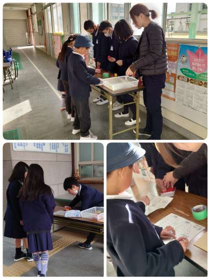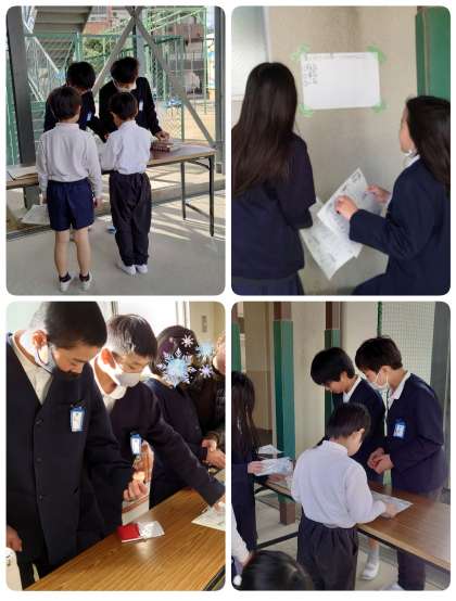 クイズの場所は4か所。子ども達はプリントを持ってクイズラリーを始めました。寒い中ですが、健康委員会の子ども達もクイズの答え合わせとスタンプを押してあげるお仕事をがんばっていました。