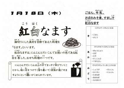 紅白なますはおせち料理にも入っている献立です。にんじんとだいこんで紅白のめでたい感じを出しています。現代は、オレンジ色のにんじんが多いですが、昔は金時にんじんが中心だったので、もっとはっきりした紅白の彩りだったことでしょう。