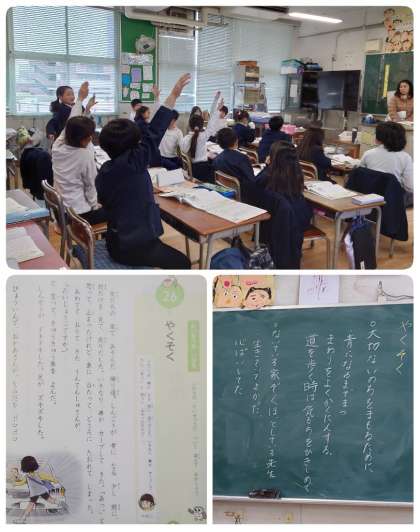 道徳の時間に「やくそく」の学習をしていました。この教材では、命の大切さについて考えます。子ども達は意見を活発に発表していました。自分が発表したら、次に手を挙げている子を当てていきます。どんどん子ども達が意見を発表していき、先生が子ども達の意見を板書していました。子ども達は命の大切さについて真剣に考えることができていきました。