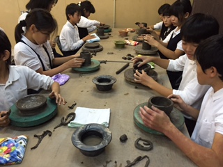 12時30分から陶芸教室で「手ひねり体験」の実習です。係の方から説明の後、「世界にひとつ」しかない思い思いの作品を造っていきました。最初は湯呑みのつもりが、丼茶碗になったり、花瓶が湯呑みになったりと悪戦苦闘していました。みんなの作品は、来年2月に「登り窯」で焼きあげ、卒業間近の3月中旬に送られてきます。どんな作品になるか、今から楽しみです。