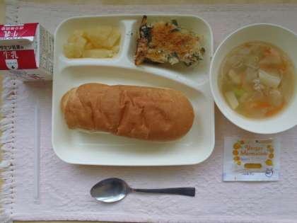 ほたて貝のグラタンは、ほたて貝の貝柱がゴロゴロ入ったグラタンです。ほうれん草の緑色とパン粉の焦げ色が色を添えます。もちろん、おいしさも抜群です。