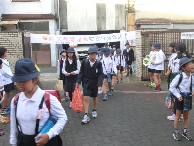 タスキをかけて、大きな声で「おはようございます」と、あいさつを交わしていました。いつもどおり8時15分までには、すべての班が登校をしました。1年生から6年生までが、気持ちの良い「元気なあいさつ」ができるような学校にしていきましょう。