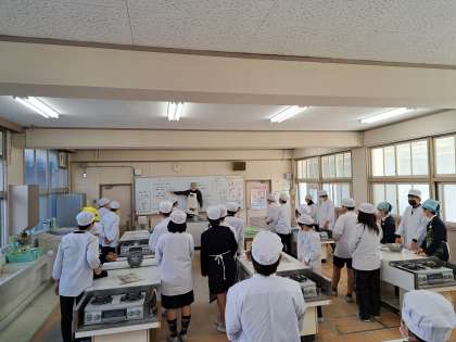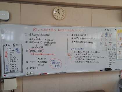 6年生が、いろどり炒めとスクランブルエッグを作ります。