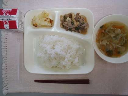 豚肉と干しずいきのみそ煮は、豚肉と干しずいきの他に、うすあげや青ねぎも入り、ご飯によく合う献立です。