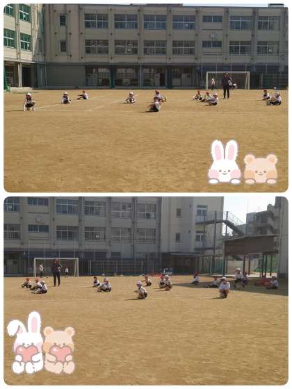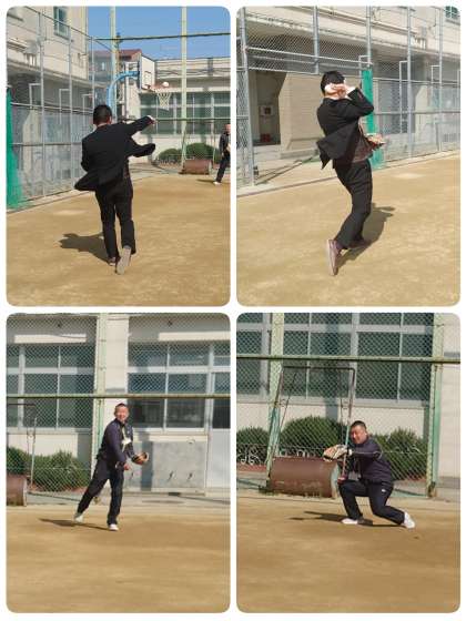 先日、大谷選手にいただいたグローブに合うボールを注文しました。いつ届くかと心待ちにしていたらやっと届きました。この写真は、教頭先生と教務主任の先生にキャッチボールをしてもらい、子ども達が使いやすいかどうかを確かめている様子です。すると、運動場で体育をしていた1年生からがんばれコールが起こりました。かわいい応援で2人の先生も張り切っていました。ほっこりしたひと時でした。