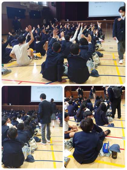 午後から4小の6年生が城陽中に集まり、部活動見学と生徒会から中学校生活についてのお話を聞きました。案内してくれたのは、中浜小学校の卒業生。1年経つとこんなに成長するんだとすごく感心しました。6年生も今日の見学で中学校生活について夢や希望をもってくれたと思います。先生方、そして生徒会のみなさん、優しくていねいに対応していただき本当にありがとうございました。