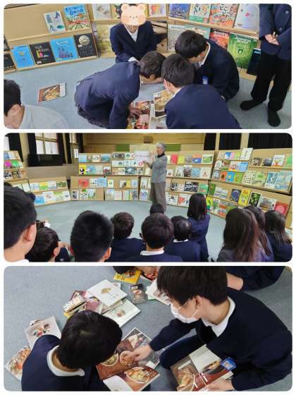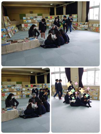 お昼休みも「絵の本広場に行ってきま〜す!」と、たくさんの子ども達が集まり、絵本の世界を楽しんでいました。加藤先生は魔法使いみたいです。子ども達が吸い寄せられるように集まって、絵本のお話をしていました。