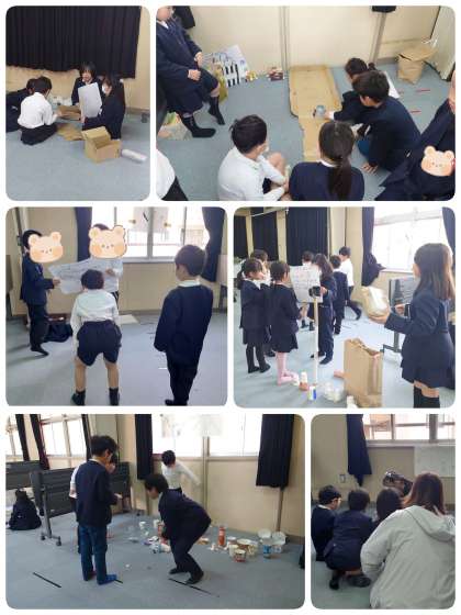 2年生がおもちゃコーナーを作って、1年生をご招待しました。10個も遊びのコーナーがありました。ストラックアウト・すすむふね・魚つり・ころりん・めいろ・キャップ入れ・パッチン・レーシングカー・とことこ車・紙コップロケットです。