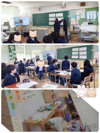 2時間目に5−1の学級で家庭科の公開授業を行いました。研修のための授業で、いつも教育センターのスクールアドバイザーの先生が指導に来てくださっています。