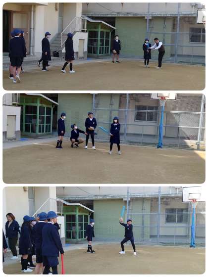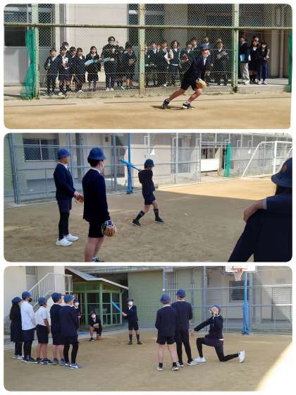 15分休み、大谷選手からいただいたグローブで遊べたらいいなということで、6年生だけで運動場で遊びました。プラスティックバットなのにどんなけ飛んでいくの?と、びっくり!防球ネットを越えて道路までいってしまいました。今までやったことないと少ししり込みしていた子も挑戦していました。大谷選手のグローブをさわる機会が少しでもとれてよかったです。