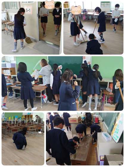 1年間お世話になった教室・机・いす・ロッカーなど、みんなで力を合わせてピカピカにしました。子ども達は、気持ちを込めてすみずみまできれいにしていました。おかげで4月から学年が上がって、来年使う人達も気持ちよく過ごせそうです。