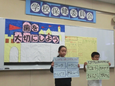 11月5日(木)6限、「歯を大切にしよう」のテーマで、「学校保健委員会」を開催しました。学校歯科医、PTA保健給食委員、児童健康委員、担当の教職員が参加をして、話合いを行いました。