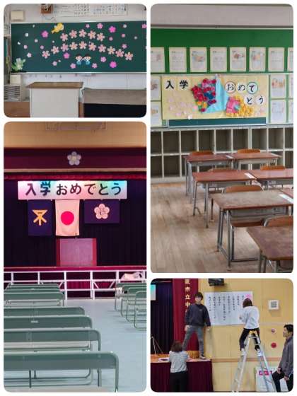 今日は、朝から入学式の準備をしました。準備では、6年生が大活躍。式場も教室も新一年生を迎えるためにピカピカにしてくれました。