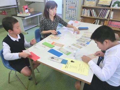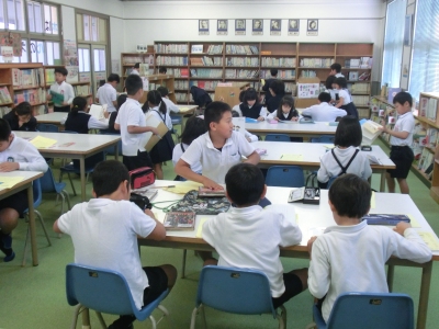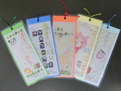 今日はよいお天気にもかかわらず、約30名が「読書週間カード」を持って、図書館にやってきました。図書委員は、5冊読めたらプレゼントする「しおり」を追加で作成【写真中・右】していました。12月には校長経営戦略予算で購入した閲覧机と椅子などを配置し、学習環境を整備する予定です。図書館に自主的・積極的に足を運ぶ児童が増えるものと期待しています。