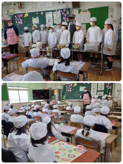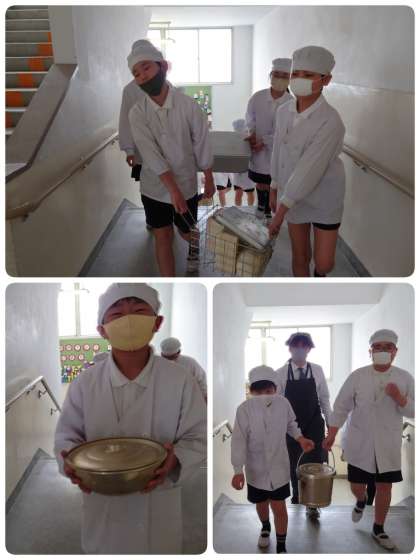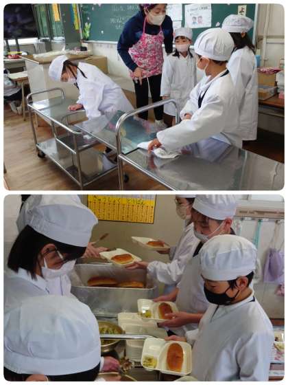 6年生が全部準備をしてくれました。給食室から給食を運んで配膳も全部してくれました。