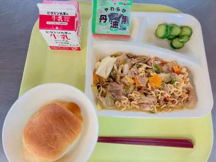 ミニコッペパンに焼きそばを挟んで、焼きそばパンにして食べている子もいました(*^—^*)