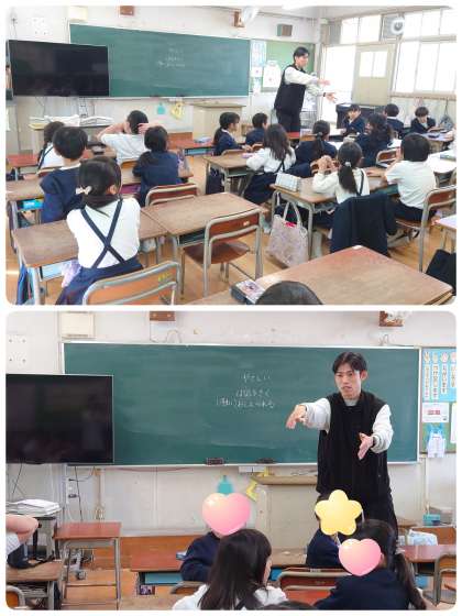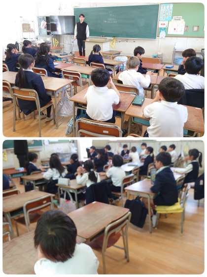 2年生は、学級目標を決めていました。黒板には「やさしい」「はなしをきく」「(1年生に)おしえられる」と書いてありました。先生の話を聞いていると、これからもっと意見を出してみんなで考えて目標を決めていくようです。目標が決まったらまたお知らせします。
