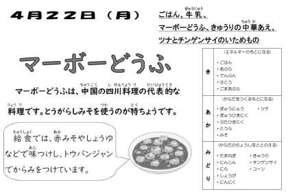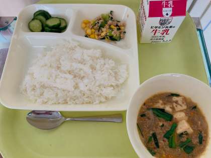 今日のマーボーどうふは、ご飯に乗せてマーボー丼にして食べたりと、子どもたちは美味しい!と笑顔で食べていました。