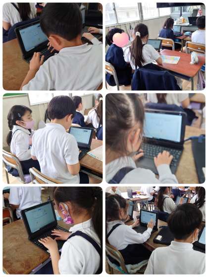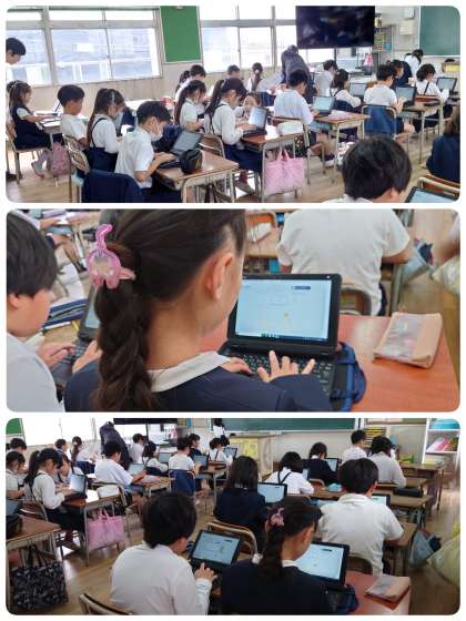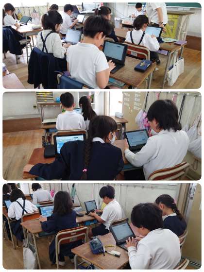 3年生の子ども達がローマ字入力の練習をしていました。ローマ字タイピング練習アプリを使って「か行」と「さ行」の入力練習をしていました。指の置き方がよく分かるので、子ども達は画面を見ながら練習することができます。みんなとても熱心に取り組んでいました。これからも継続して練習していきます。