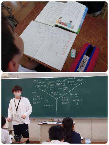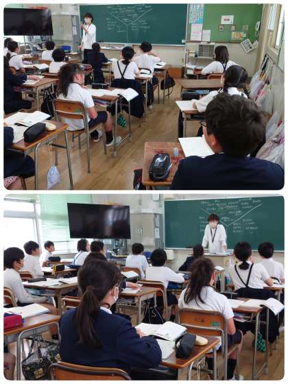 「さなぎたちの教室」は、6年生が今国語で学習している教材です。生き物係になった谷さんは、「わたし、・・・ちょっと苦手みたいな気がするの。」と話します。ここからお友達との関係を一歩踏み出していくお話です。6年生の子ども達は、この谷さんの心情の移り変わりを読み取っていきます。先生の顔を見て話をじっと聞き考えている子ども達の表情がとてもステキな時間でした。最後までしっかり読み取っていってほしいと思います。