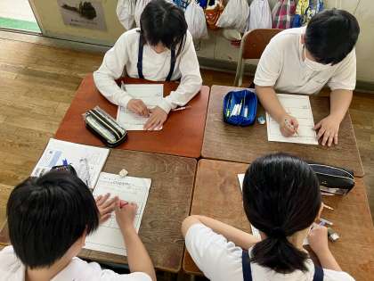 6年生になった一か月間を振り返り、「これができた」とか「これはもっとがんばろう」など考えながらワークシートに書き記していました。