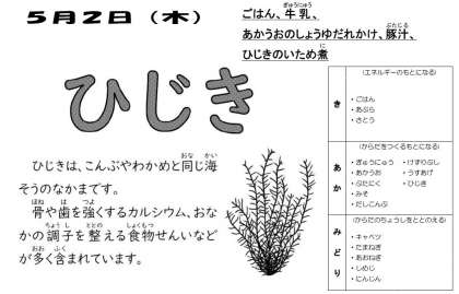 ひじきは、カルシウムをたっぷり含んでいるので、からだをつくる赤の食べ物です(^▽^)/
