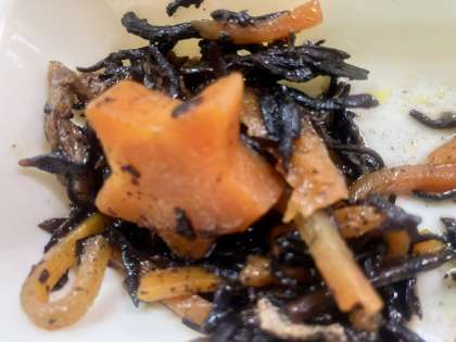 今日の給食に、ひじきのいため煮があったのですが、その中の人参がラッキー人参になっていました。
