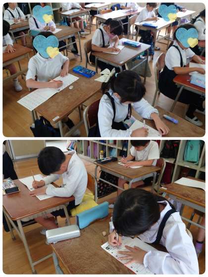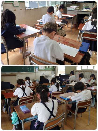 2年生の子ども達が漢字のテストをしていました。みんなできるだけていねいな字で書こうとがんばっていました。手を挙げた子から担任の先生と一緒にまる付けをしました。分からなかったり間違ったりしていた漢字を書くと、なぞって覚えていました。がんばれ2年生!!