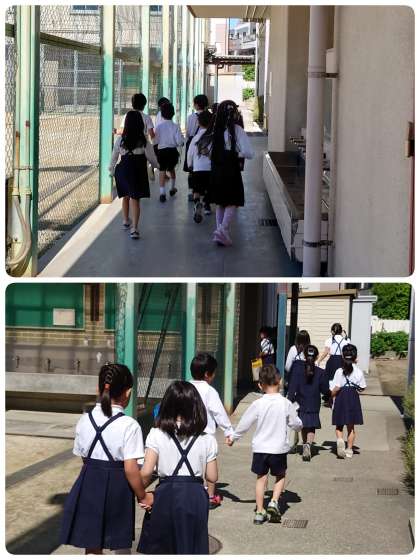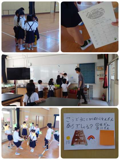 今日は、1・2年生の学校たんけん。朝から1年先輩の2年生の子ども達は大はりきりです。いつもは上の学年にリードしてもらっている2年生が今日はお兄ちゃん、お姉ちゃんです。グループに分かれて校内のいろいろな教室を案内していきました。