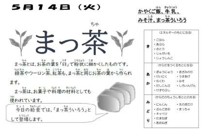 抹茶ういろうが給食で一番好き!という声がありました♪