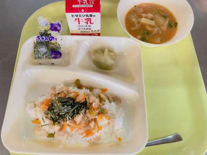 また、かやくご飯にはきざみのりが付き、やったあきざみのり!と喜んでいる児童もいました。