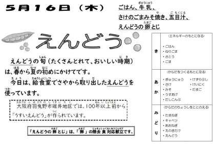 ※えんどうの卵とじは、えんどうの流通量が少なく調達が困難なため、グリンピースに変更しています。