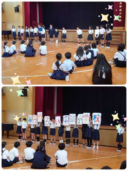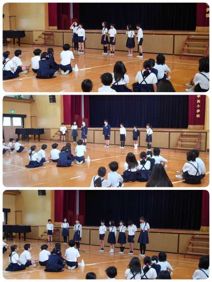今日は、たてわり班での初めての児童集会でした。まず最初に今年度の代表委員の自己紹介がありました。運営委員・学級代表・委員会委員長があいさつをするたびに他の子ども達からがんばってねの拍手が起こりました。今年度の児童会目標の発表もありました。「毎日明るい中浜小学校」です。シンプルでわかりやすい目標です。みんなで明るい学校にしていくためがんばっていきます。