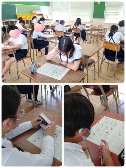 6年生は外国語のヒアリングテストをしていました。ネイティヴの発音を聞き取って解答していきます。とてもいい緊張感を感じました。
