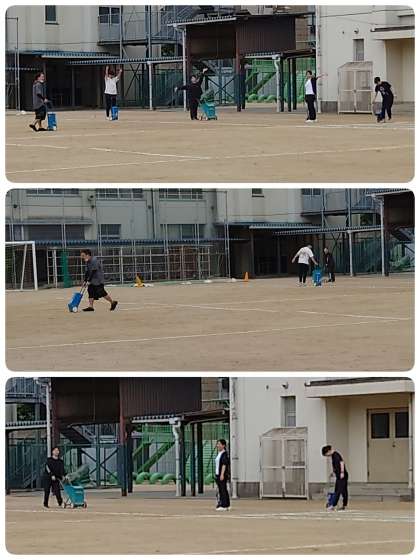 朝早くから、先生達が出勤してきて、運動場のライン引きをしてくれました。運動まで毎日続きます。写真を撮っていることに気づいた先生達が手を振ってくれました。