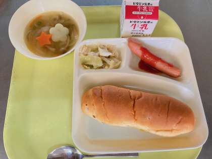 ウインナーのケチャップソースをおさつパンにはさんで、ホットドッグのようにして食べている児童もいました♪