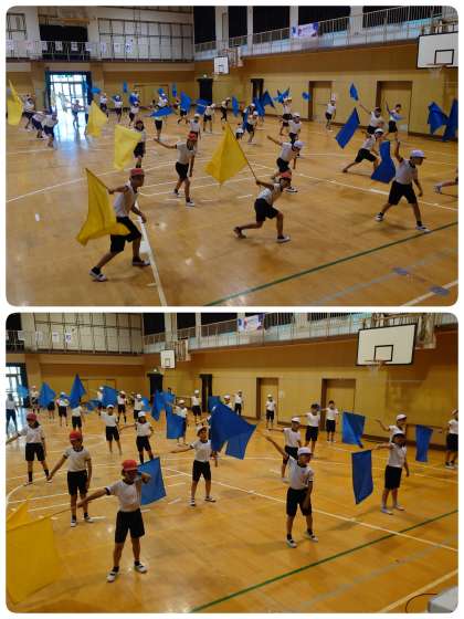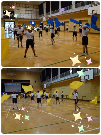 今日のフラッグの曲は「紅蓮華」。決めポーズもあってかっこよく動いていました。ちょっと難しいところもあります。上手くいったらいいねと担任の先生達とお話をしました。まだまだレベルアップしていきますよ。