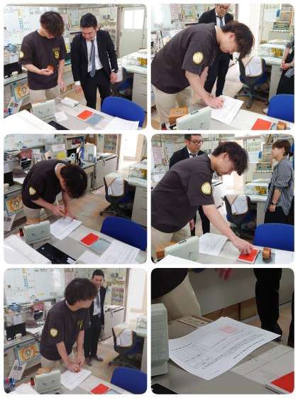 職員室では、卒業証書に使う印影のもとになる校印を押していました。きれいな印影ができるように、みんなで順番に真剣に何度も書類に押印しました。6年生の担任の先生が職員室に来たので、さっそく声をかけてトライしてもらいました。いっぱい書類を作ったので、その中で一番いいなと思うものを選びました。とにかくみんなでがんばりました。